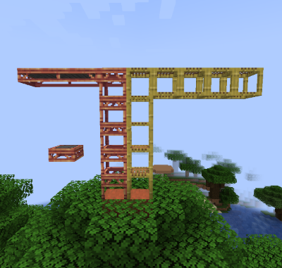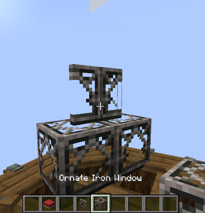 왼쪽부터 Copper Scaffolding, Andesite Casing, Ornate Iron Window입니다. Scaffolding은 다른 버전도 존재하며 원래 대나무로 만드는 기본 Scaffolding과 다르게 공중에 띄울 수도 있습니다. Casing은 여러 버전이 있는데요, 개인적으로 텍스쳐가 연결된다는 점과 특유의 Steampunk 스타일이 좋아서 건축에도 자주 쓰입니다. 마지막은 개인적으로 공장 창문 느낌 내고 싶을 때 자주 쓰는 Ornate Iron Window 블록입니다.