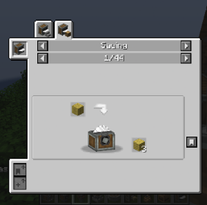 Mechanical Saw를 활용한 레시피에는 Block Cutting과 Sawing이 있습니다. 전자는 Stonecutter 레시피들이 추가되어 있고, 후자는 나무 관련된 레시피들이 새롭게 들어가 있습니다.