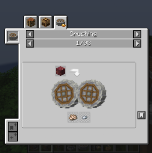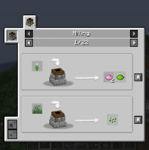 다음은 Milling과 Crusing입니다. Millstone은 극초반부에 많이 쓰이며, 밀을 갈아서 밀가루를 만드는 데 쓰일 수 있습니다. 이렇게 빵을 만들면 효율이 더 높습니다. Crushing은 Mechanical Crafter로 Crushing Wheel을 만들어야 하기 때문에 극초반부에 쓰기는 어려운데요, 부산물들을 많이 주기 때문에 광물 가공 등에 유용하게 사용할 수 있습니다.