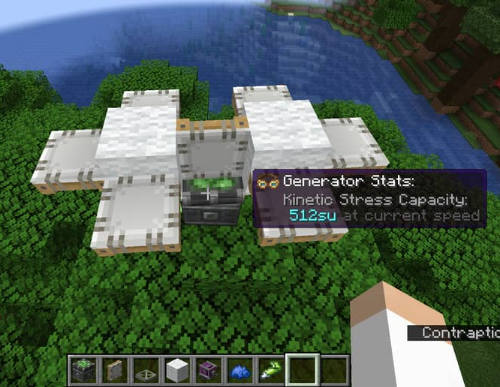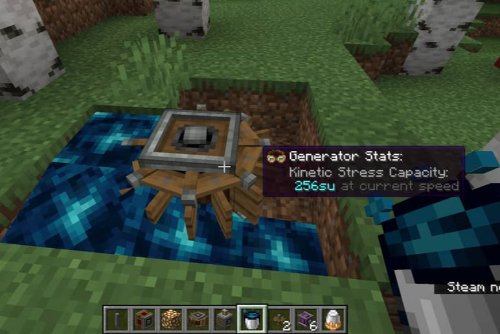 Create 모드에서는 다양한 방식으로 동력을 생성하는데요, 이에 대해서 Ponder Index를 참고하시면 좋습니다. 다만, 수동으로 돌리는 경우, 다른 모드에서 추가하는 동력원 (아래 스크린샷에서는 마지막 블록이 해당합니다), 크리에이티브 전용 모터를 제외하면 Water Wheel (큰 버전과 작은 버전), Windmill Bearing (풍력발전), Steam Engine (증기기관)으로 총 3가지가 존재합니다. 예전에는 더 있었지만, 많이 정리되었습니다. 자세한 수치들은 게임 내에서 확인할 수 있지만, 한 눈에 확인하고 싶으신 분들을 위해 이 글에도 따로 챕터를 만들어두었습니다. 여기서는 Stress Capacity의 단위로 SU를 사용하는 데요, Stress Unit의 약자입니다.