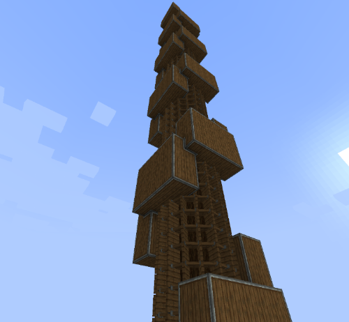 이걸 직렬이나 병렬로 극단적으로 이어서 큰 동력을 만들어 볼 수도 있겠습니다. 왼쪽처럼 수직으로 남는 공간을 활용해서 Water Wheel 탑을 쌓아서 수직축으로 돌게 할 수도 있겠고, 바다 등에서는 수평으로 설치한 뒤 마그마블록을 활용해서 돌리는 방법도 있습니다. 대신 렉 걸리는 건 알아서 잘 대처하시길 바랍니다...