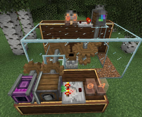 Create 모드의 동력 전달은 직관적인 편입니다. 축으로 연결되어 있으면 연결되어 돌아가고, 기어가 맞물리는 것 같으면 맞물려 돌아갑니다. 위 블록들이 아니더라도 동력을 사용하는 기계 중에서 톱니바퀴가 들어가 있으면 그 부분도 기어로 활용할 수 있습니다.